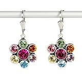 KRIKOR made in germany, Blumen-Ohrhänger, CRYSTALLIZED TM – Swarovski Elements, multi colour – IM SCHMUCKBEUTEL