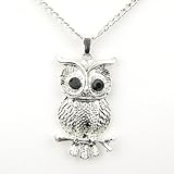 Verspielter Eulen-Anhänger mit 2 Kristallen in jet schwarz an einer Ankerkette.